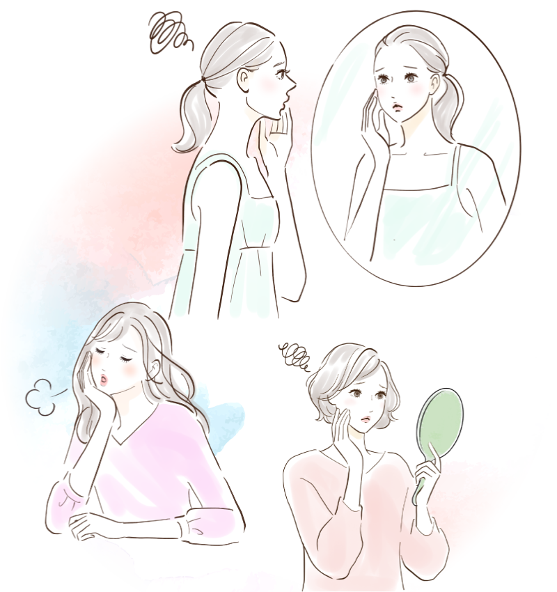 顔の大きさや歪み、むくみやたるみ、シミ・シワ、ニキビ、
